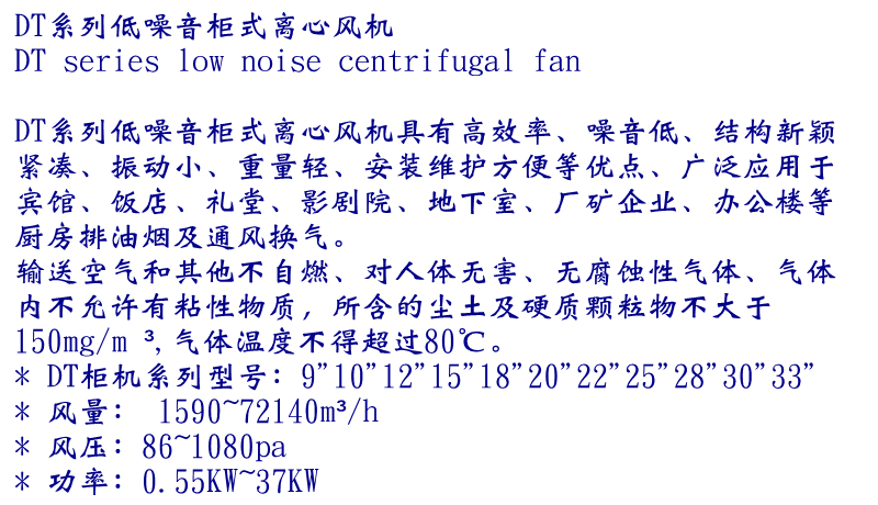 高效率、噪音低、結構新穎緊湊、振動小、重量輕、安裝維護方便等優點、廣泛應用于賓館、飯店、禮堂、影劇院、地下室、廠礦企業、辦公樓等廚房排油煙及通風換氣。