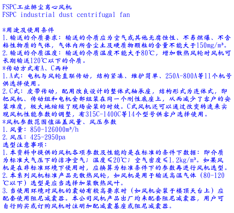 1.輸送的介質要求:輸送的介質應為空氣或其他無腐蝕性、不易燃爆、不含粘性物質的氣體,氣體內所含塵土及硬質物顆粒的含量不能大于150mg/m3。 2.輸送的介質溫度:輸送的介質溫度不能大于